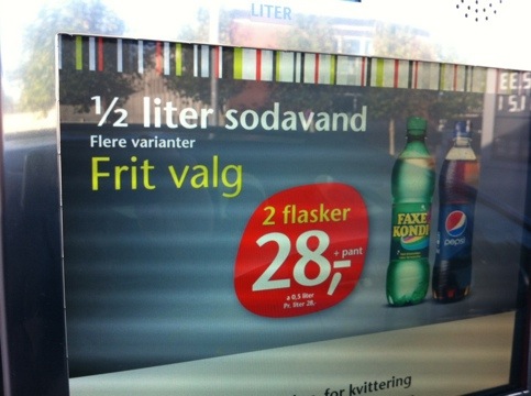 Så er der tilbud på 1 liter cola igen! 1 liter sukker opløsning er lig med 420 kcal og et alm menneske har brug for ca. 2000 kcal om dagen!! Hmmm der røg lige 1/4 af dagen på et hurtigt lille valg! Snupser man så også 3 pølsehorn og en pose guf begynder det sgu at ligne en minus dag!! Komnuindikampen Shell !!